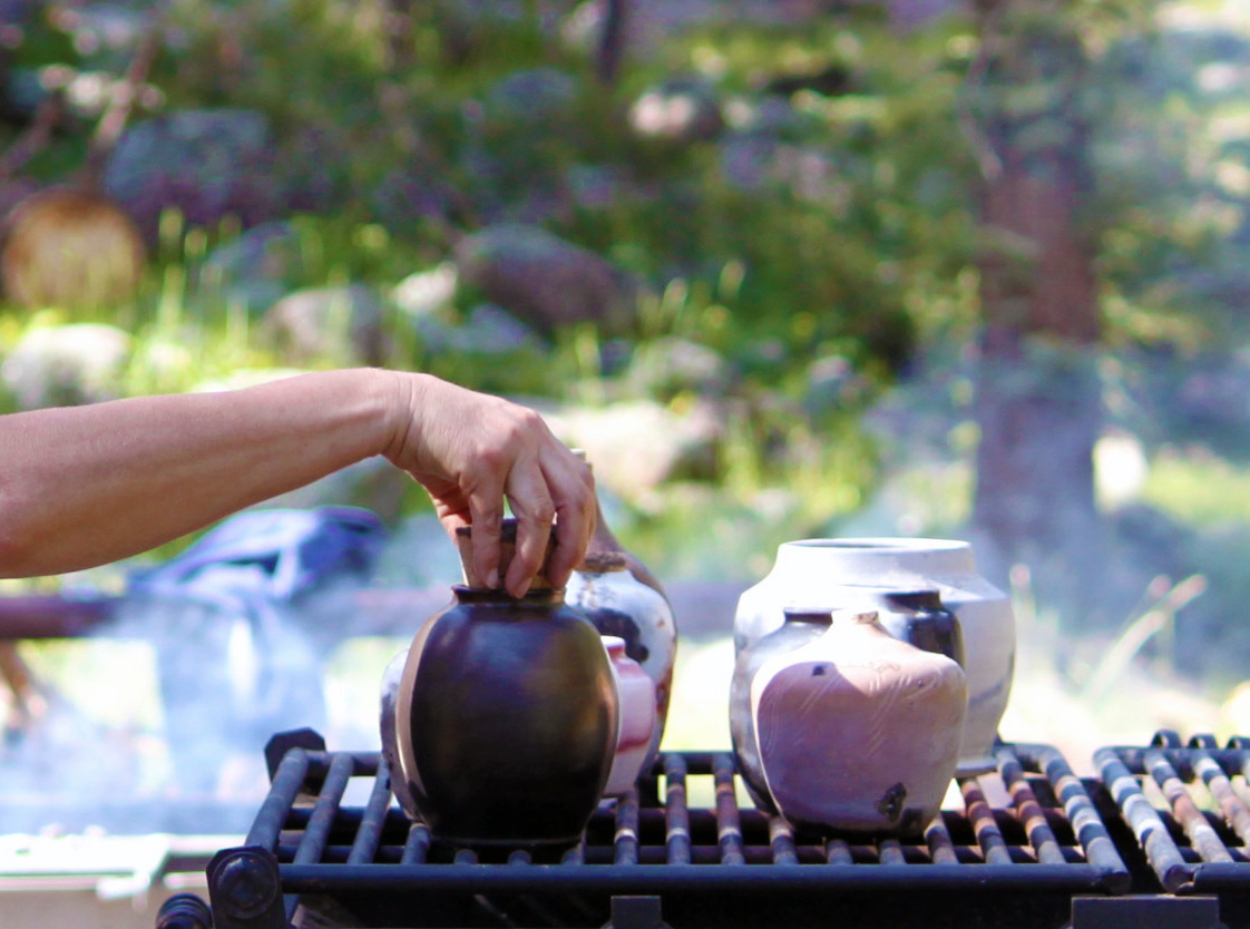 Last weekend in Colorado, the campfire’s usual duties expanded from warming hands and feet and toasting marshmallows to something much more artistic and existential. Over the years, I have admired and appreciated my mother-in-law, Moe’s skill: throwing, glazing, and firing a variety of beautiful pottery. Though most of her pots are fired in either electric or gas kilns in a studio, the unique pieces produced at primitive or pit firings have always intrigued me.